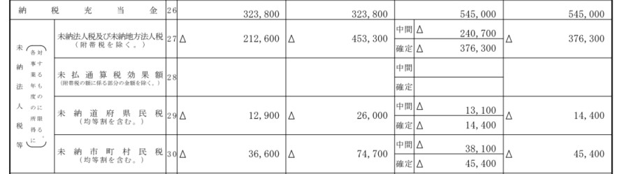 前期法人税納付も別表表記にかかわってきますので載せておきます。